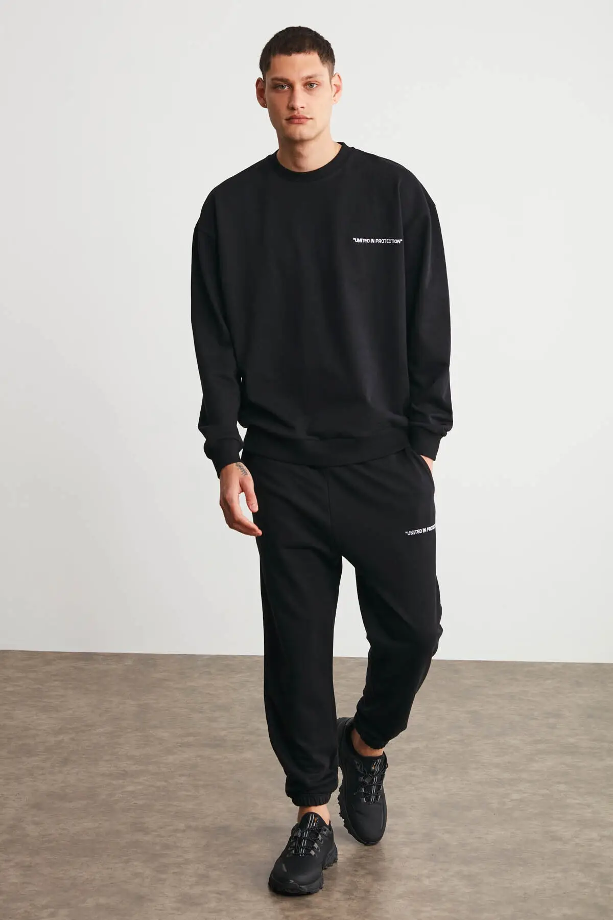 Addition Information of Marshall Men 'S Black Embroidery Detail Basic Tracksuit Set