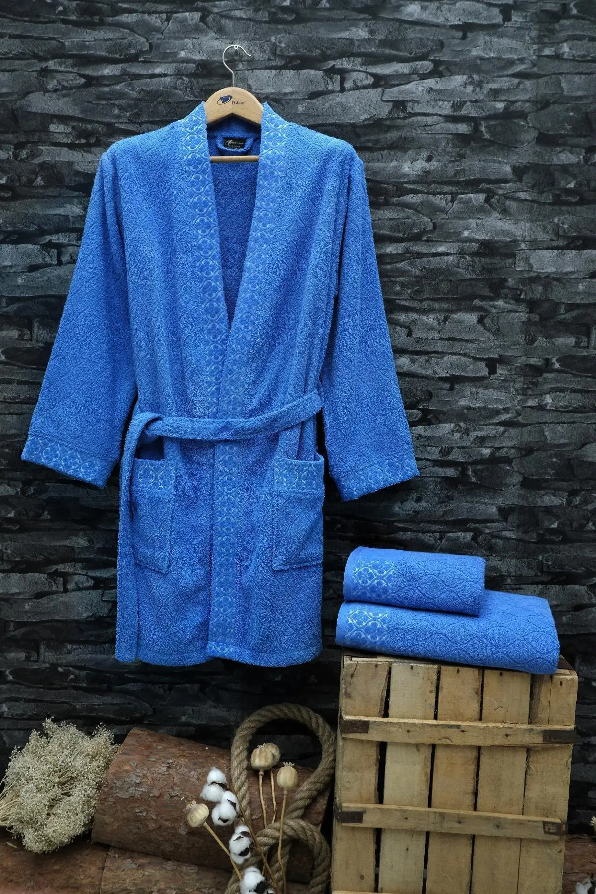 Buy Curling Jacquard Male Bathrobe Set (3 Pcs Set) and You will Save USD 38.64 or 0% %, Becuase You Just Pay for 49.99 not Full Price for 88.63