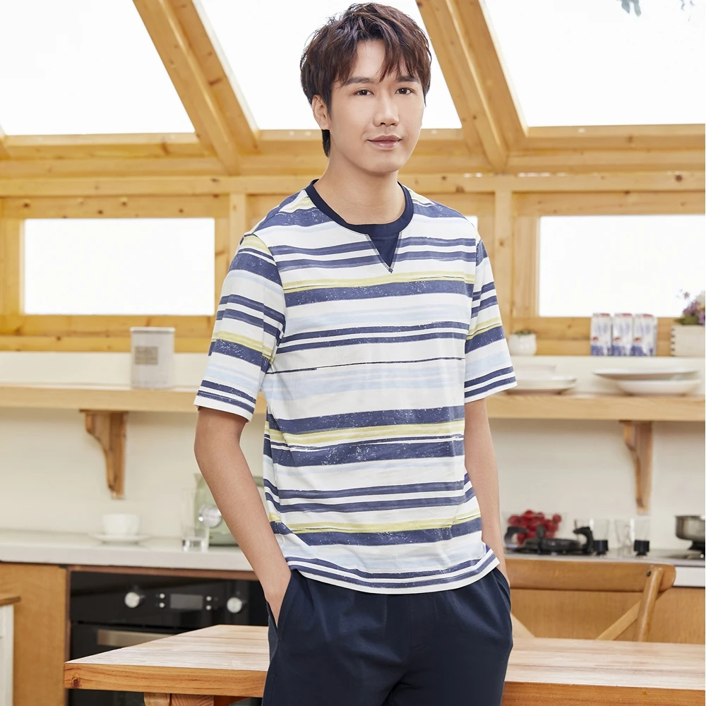 Buy Conlia Men's Short Sleeve Cotton Pajamas Striped Pyjama Sleepwear Tops Pants Suit Loungewear 2020 Plus Size Home Wear and You will Save USD 0 or 0% %, Because You Just Pay for 69.00 not Full Price for 69.00