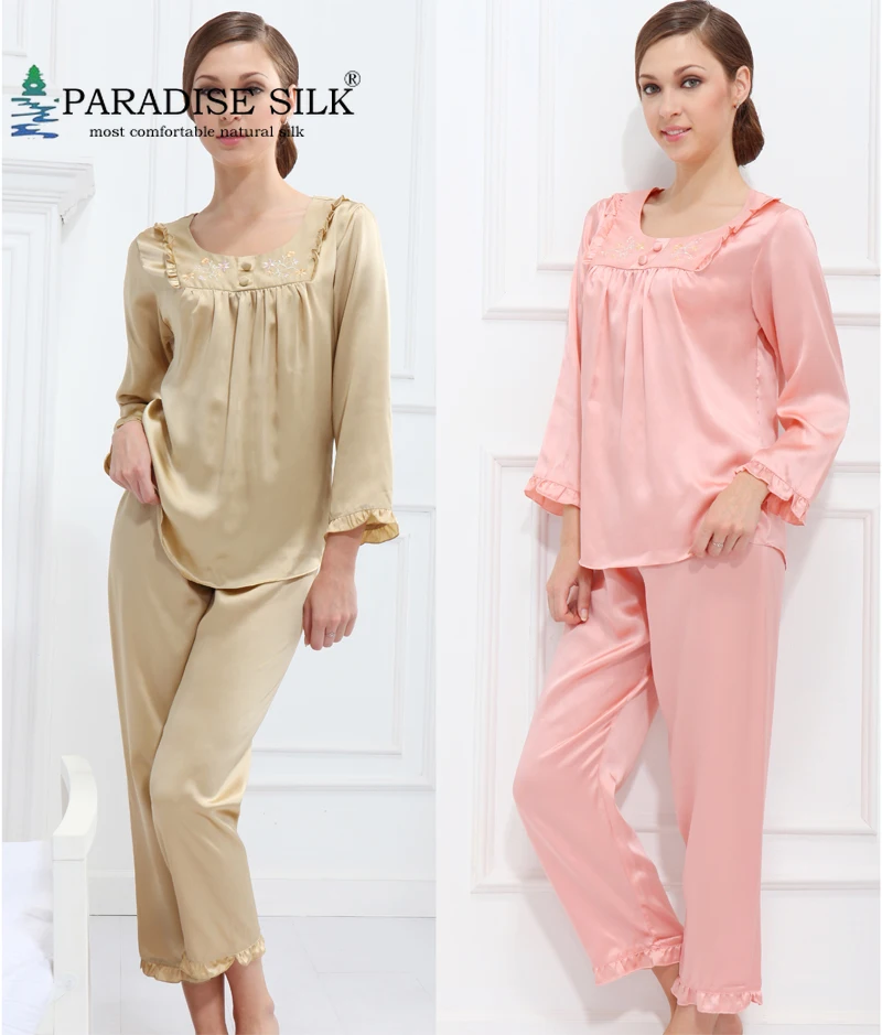 Buy Pajama Set 100% Pure Charmeuse Silk Ladies Pajamas Set For Women Size M L XL and You will Save USD 0 or 0% %, Because You Just Pay for 79.99 not Full Price for 79.99